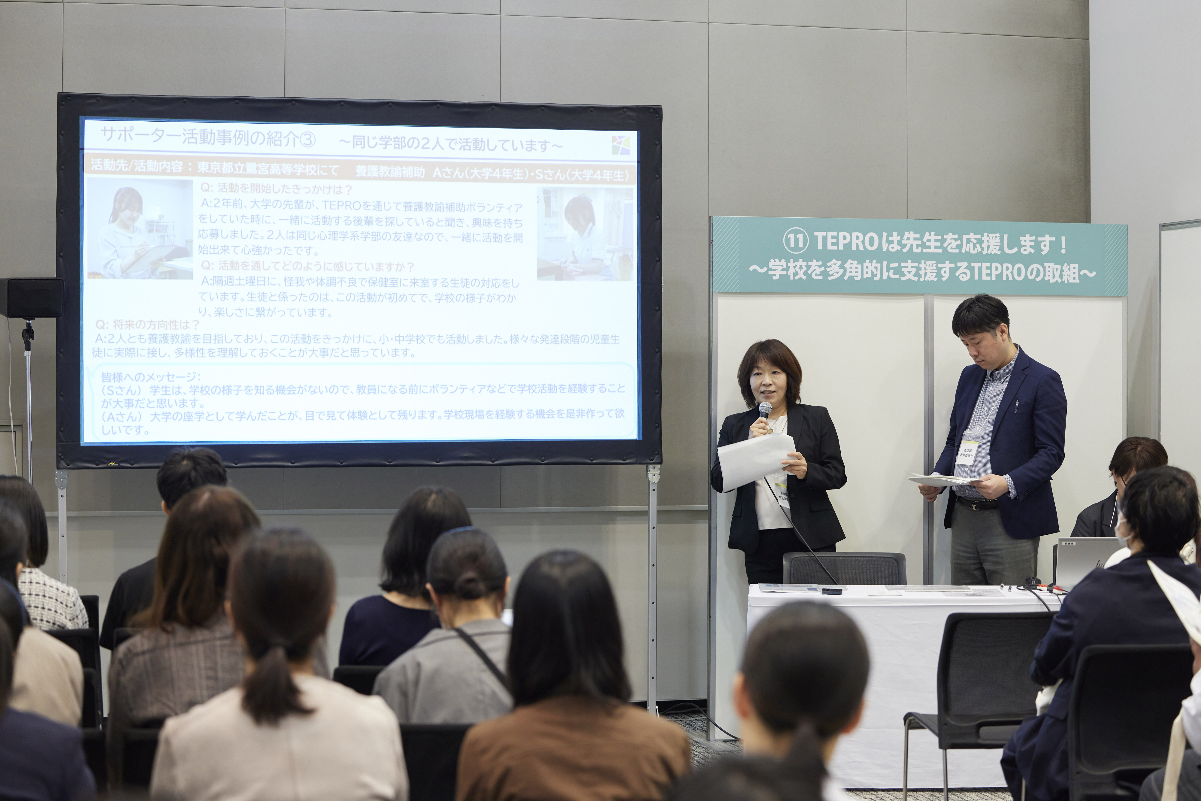 教員を志す気持ちが強くなった。 それぞれのブースを30分程で移動できるので多くのブースを回ることができて満足。(大学4年生)