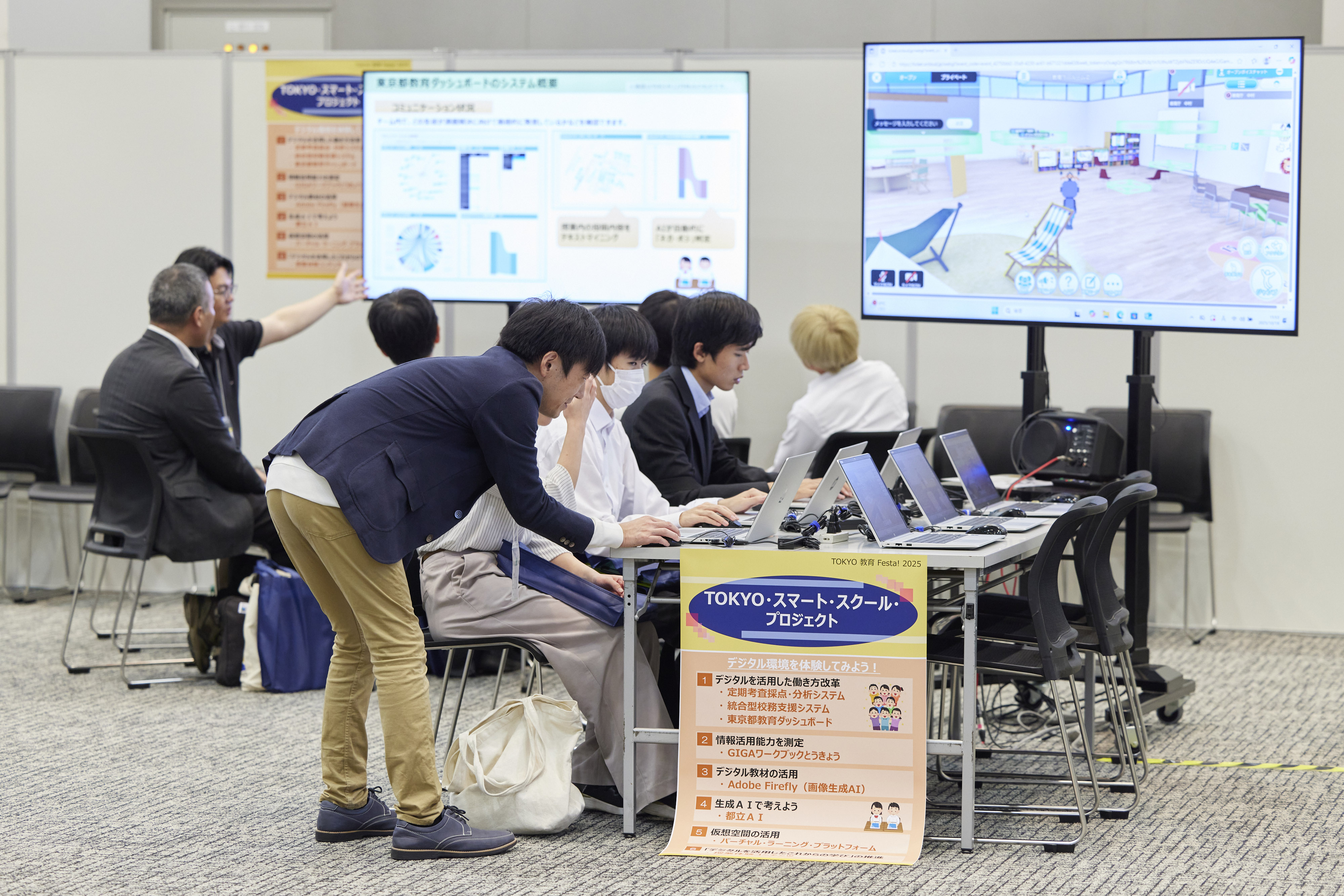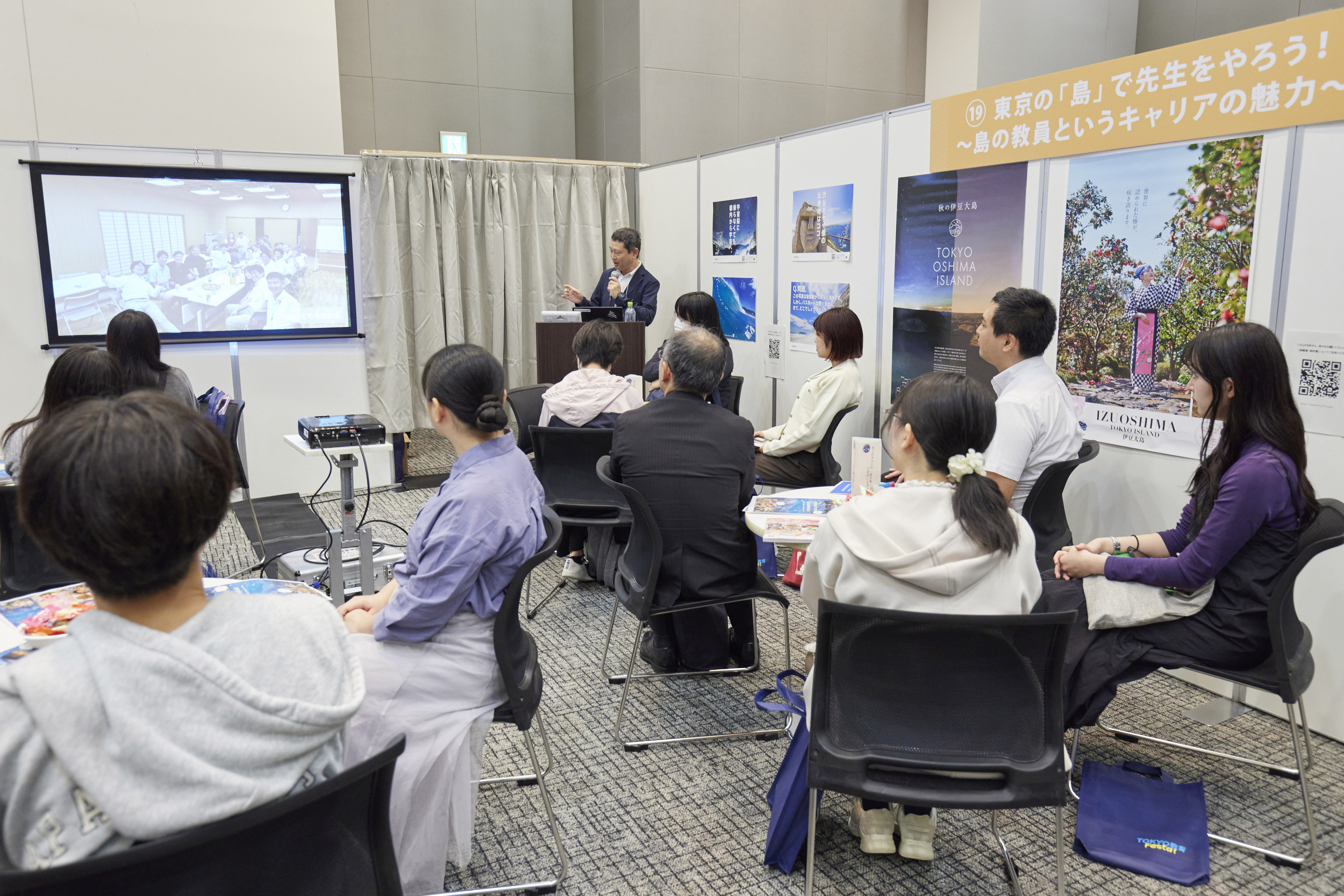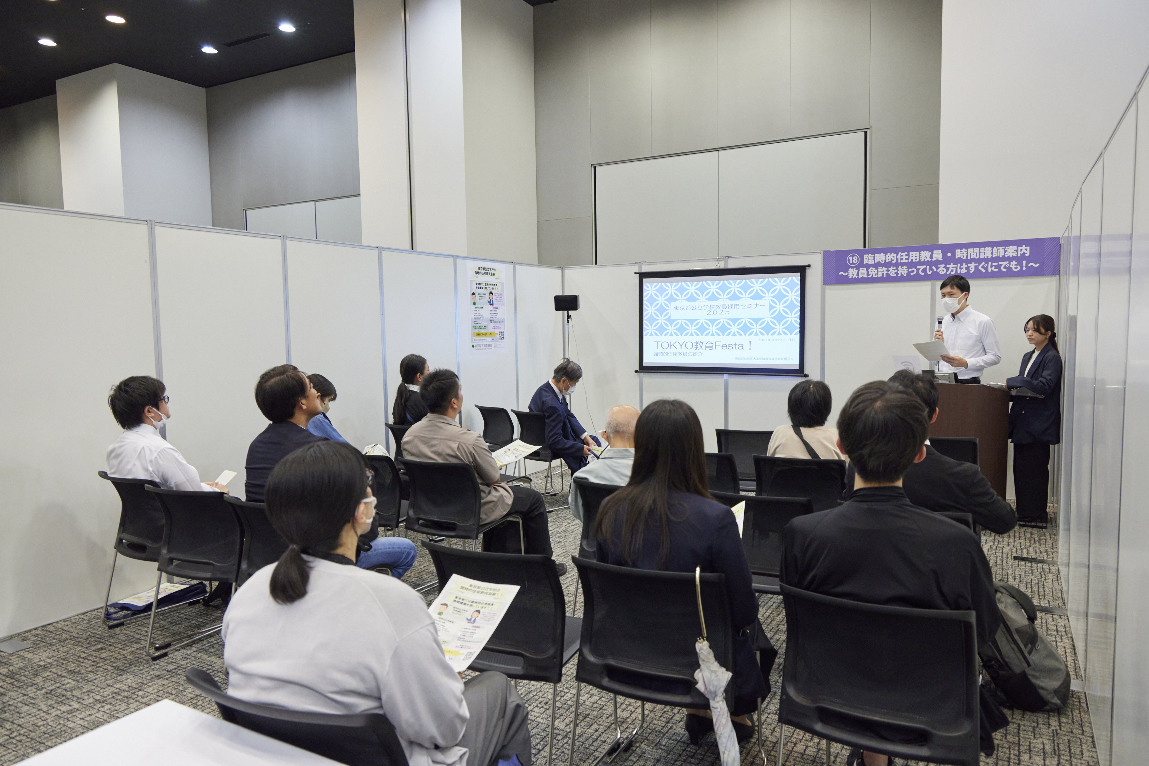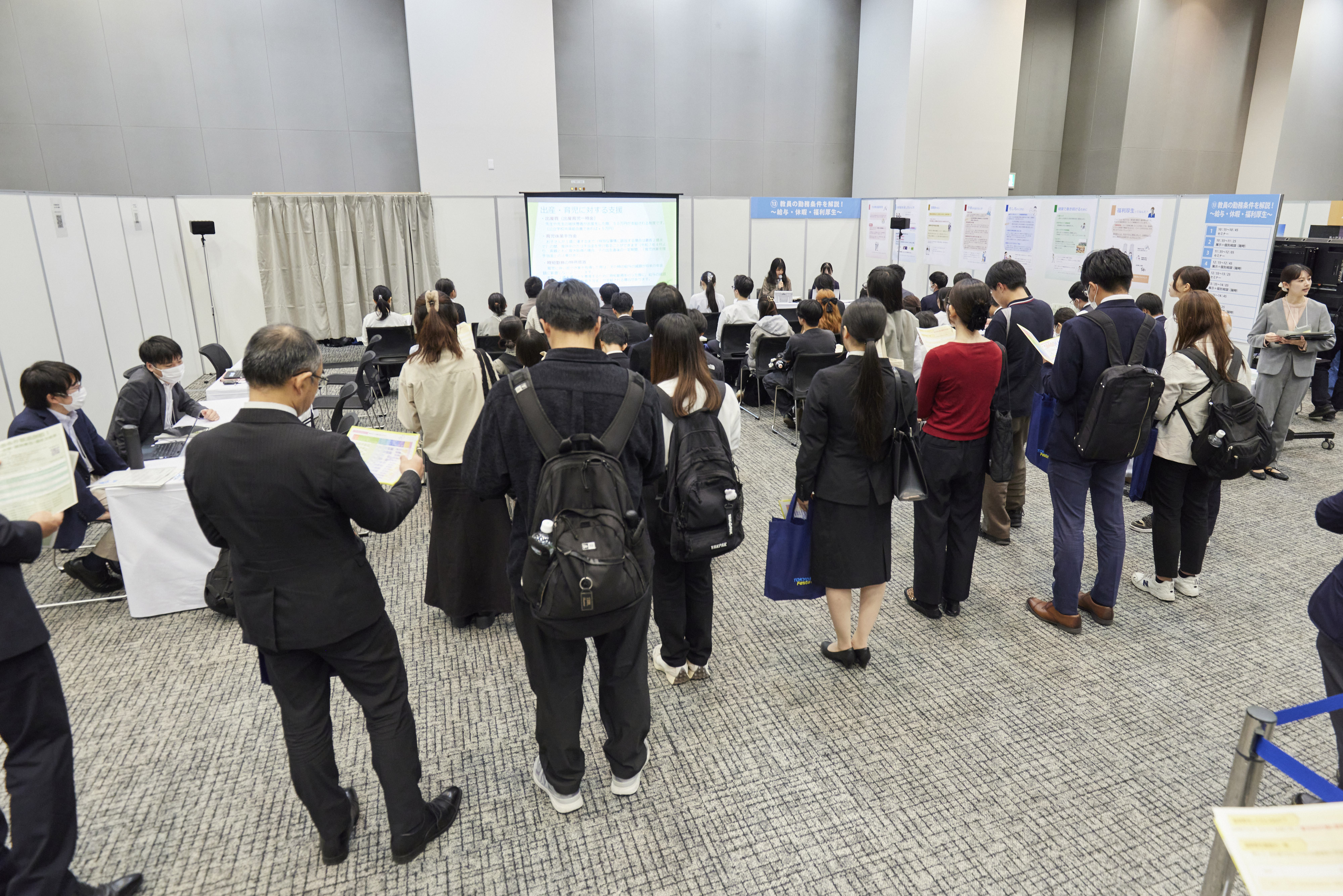 当日は9つのエリアに分かれたさまざまな内容で、東京都の教員として働く魅力の発信と、不安や疑問にお答えしました。